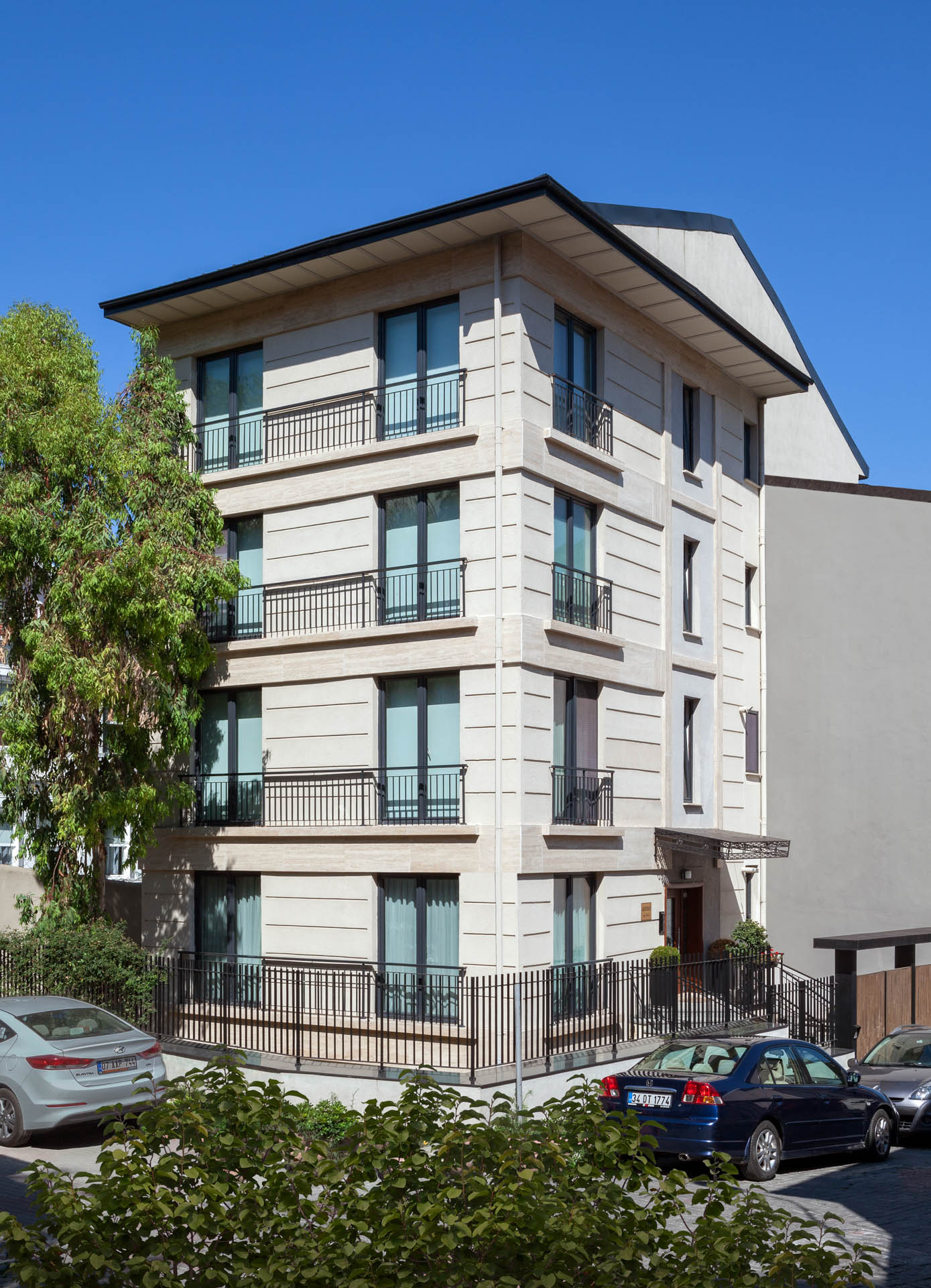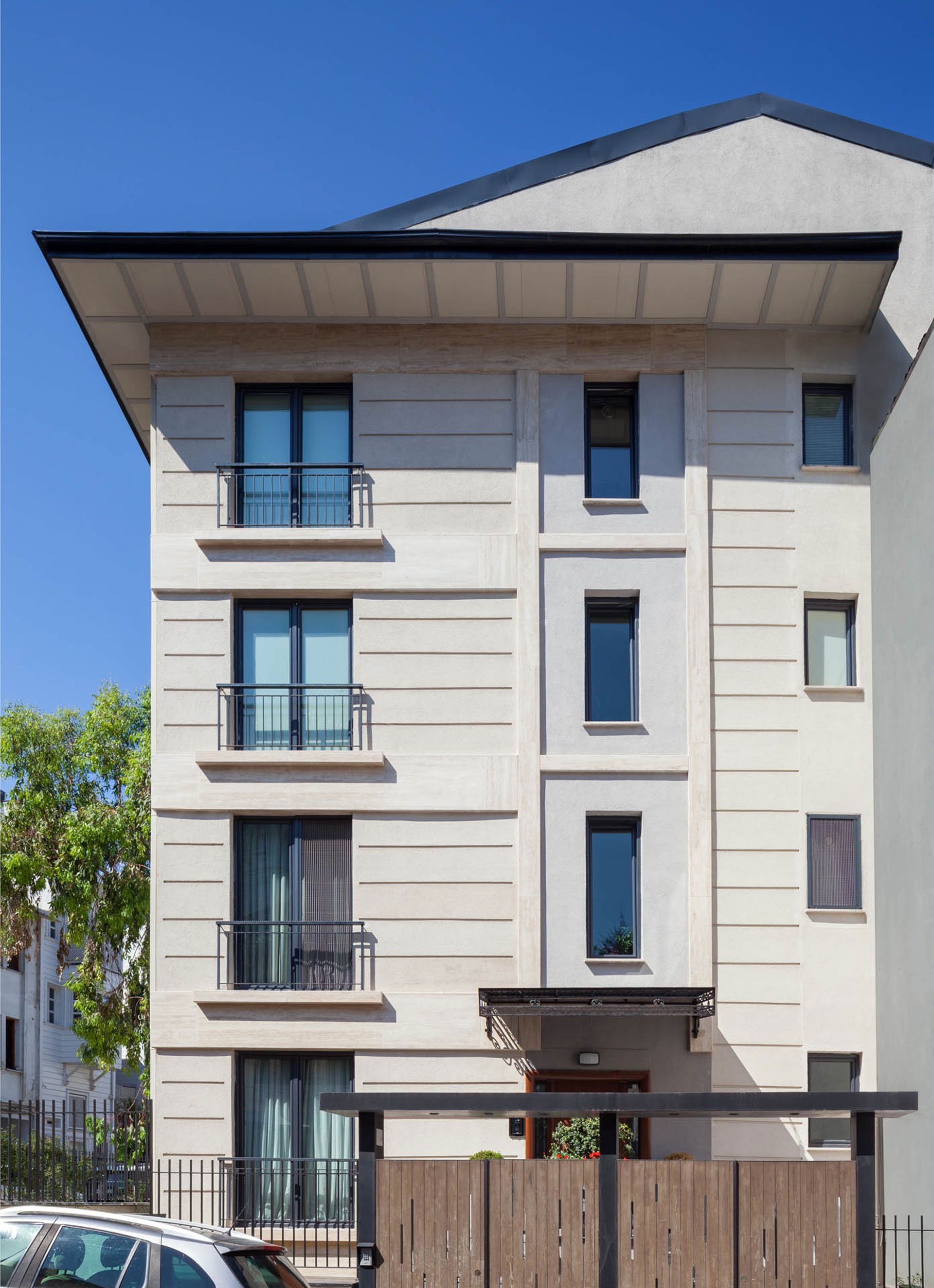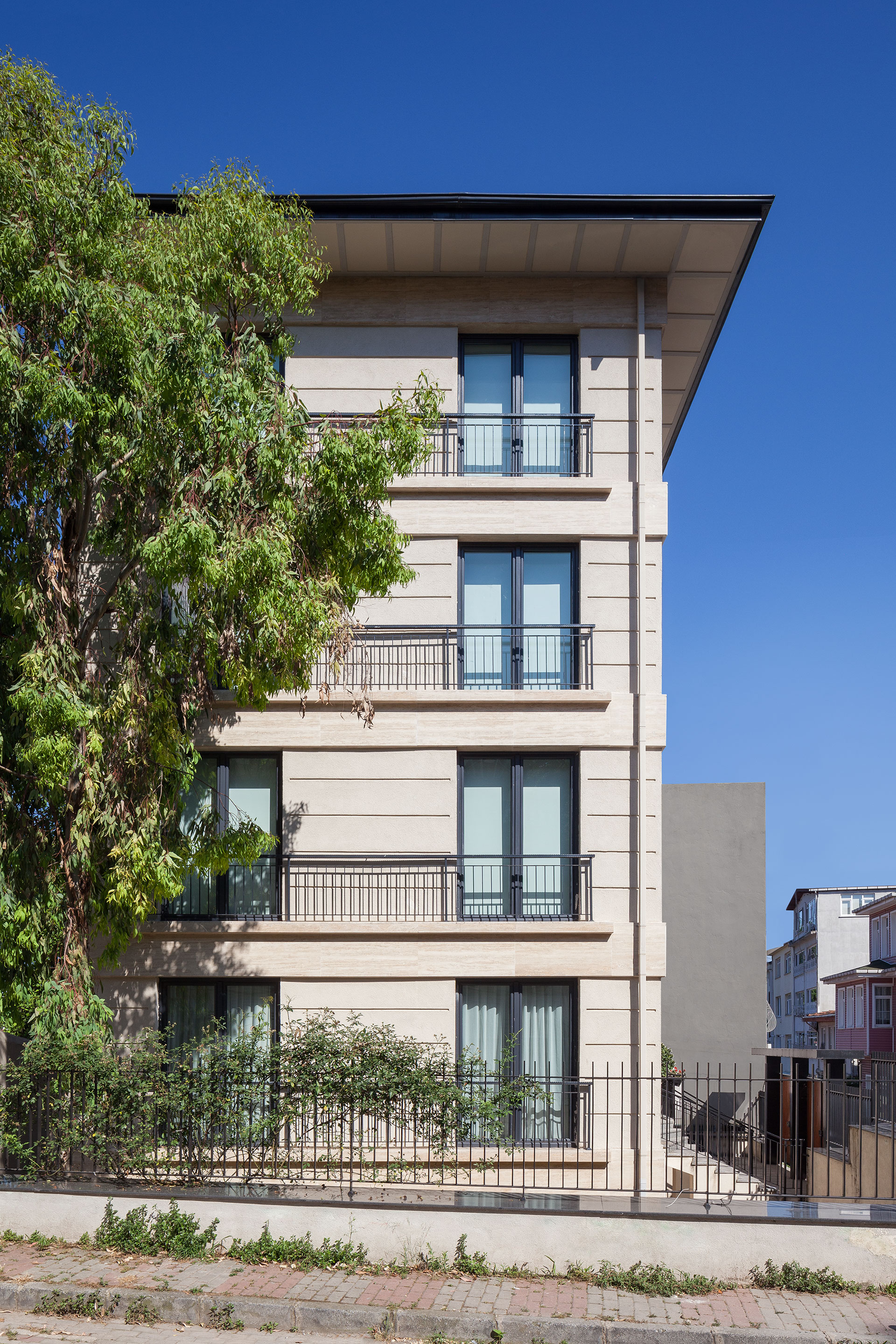 Emirgan, Boyacıköy'de Tarihi Boyacıköy Manavı karşısında bulunan beş katlı apartman güçlendirme projesi ile yenilenmiştir. Boğaza dik uzanan, alçak katlı evlerin sıralandığı Hekim Ata Caddesi'nde yer alan yapının ana yaklaşımını, sokağın yerele ve geçmişe referans veren izlerini örtmeyen bir tasarım yaklaşımı izlenmiştir. Buna göre cephede sokağın rengine ve dokusuna uygun mermer ve sıva-boya tercih edilmiştir. Her katta tek daire bulunmaktadır. 3. normal katta bulunana daire dubleks planlanmış ve çatı arası kullanılmaktadır. Yapının güney yönünde, özellikle üst katlar İstanbul Boğazı manzarasına sahip olduğu için yaşama mekanı bu yönde düzenlenmiştir. Son katta yer alan daire üç yatak odası, iki mutfak ve iki yaşama mekânından; diğer daireler ise iki yatak odası, açık mutfak ve yaşama mekânından oluşmaktadır.