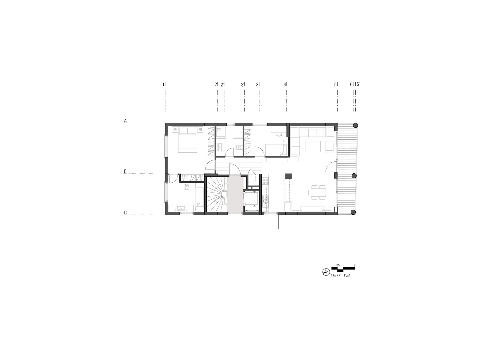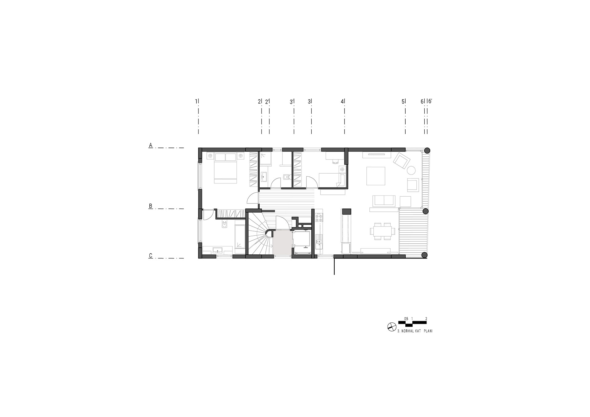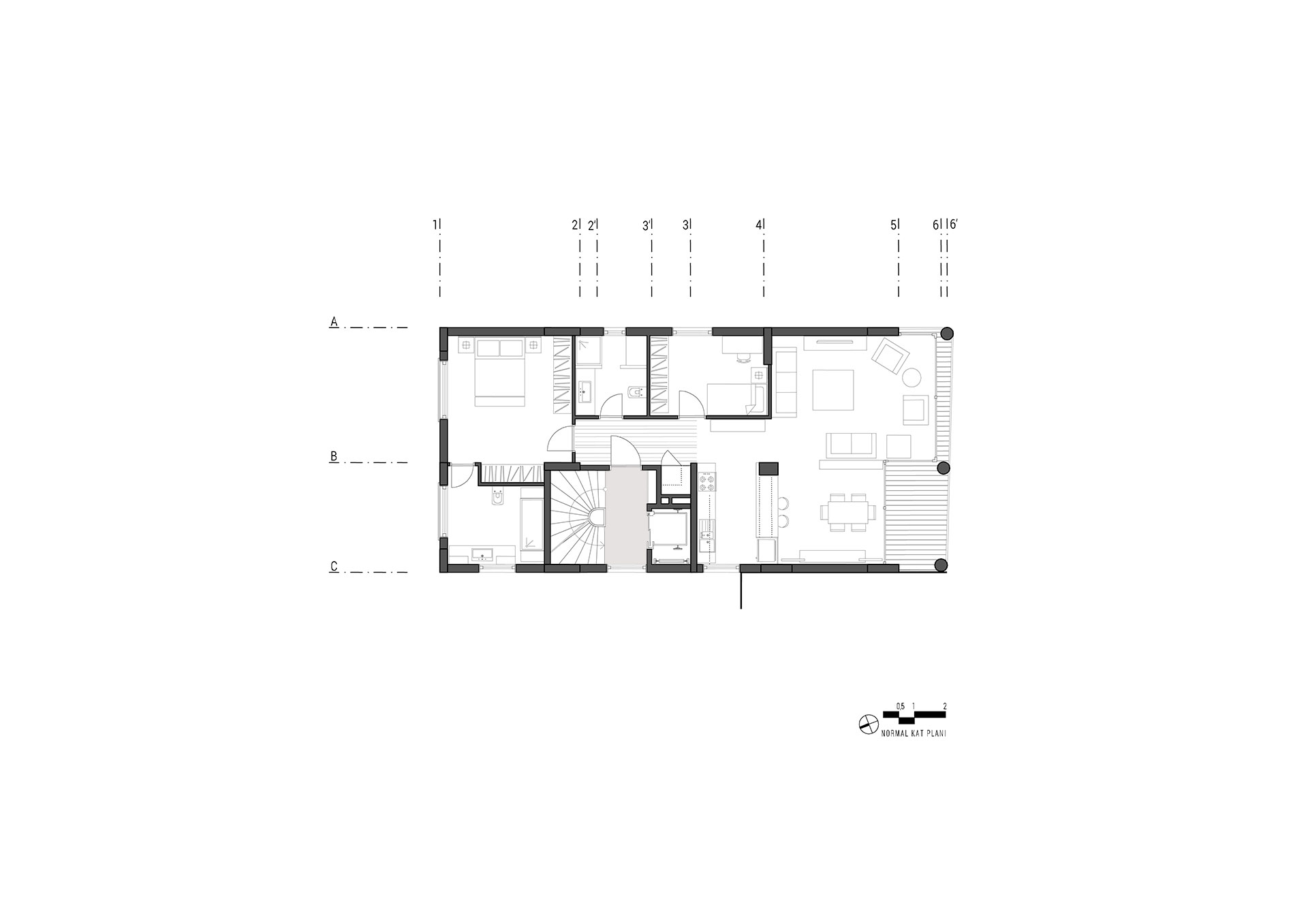 Emirgan, Boyacıköy'de Tarihi Boyacıköy Manavı karşısında bulunan beş katlı apartman güçlendirme projesi ile yenilenmiştir. Boğaza dik uzanan, alçak katlı evlerin sıralandığı Hekim Ata Caddesi'nde yer alan yapının ana yaklaşımını, sokağın yerele ve geçmişe referans veren izlerini örtmeyen bir tasarım yaklaşımı izlenmiştir. Buna göre cephede sokağın rengine ve dokusuna uygun mermer ve sıva-boya tercih edilmiştir. Her katta tek daire bulunmaktadır. 3. normal katta bulunana daire dubleks planlanmış ve çatı arası kullanılmaktadır. Yapının güney yönünde, özellikle üst katlar İstanbul Boğazı manzarasına sahip olduğu için yaşama mekanı bu yönde düzenlenmiştir. Son katta yer alan daire üç yatak odası, iki mutfak ve iki yaşama mekânından; diğer daireler ise iki yatak odası, açık mutfak ve yaşama mekânından oluşmaktadır.