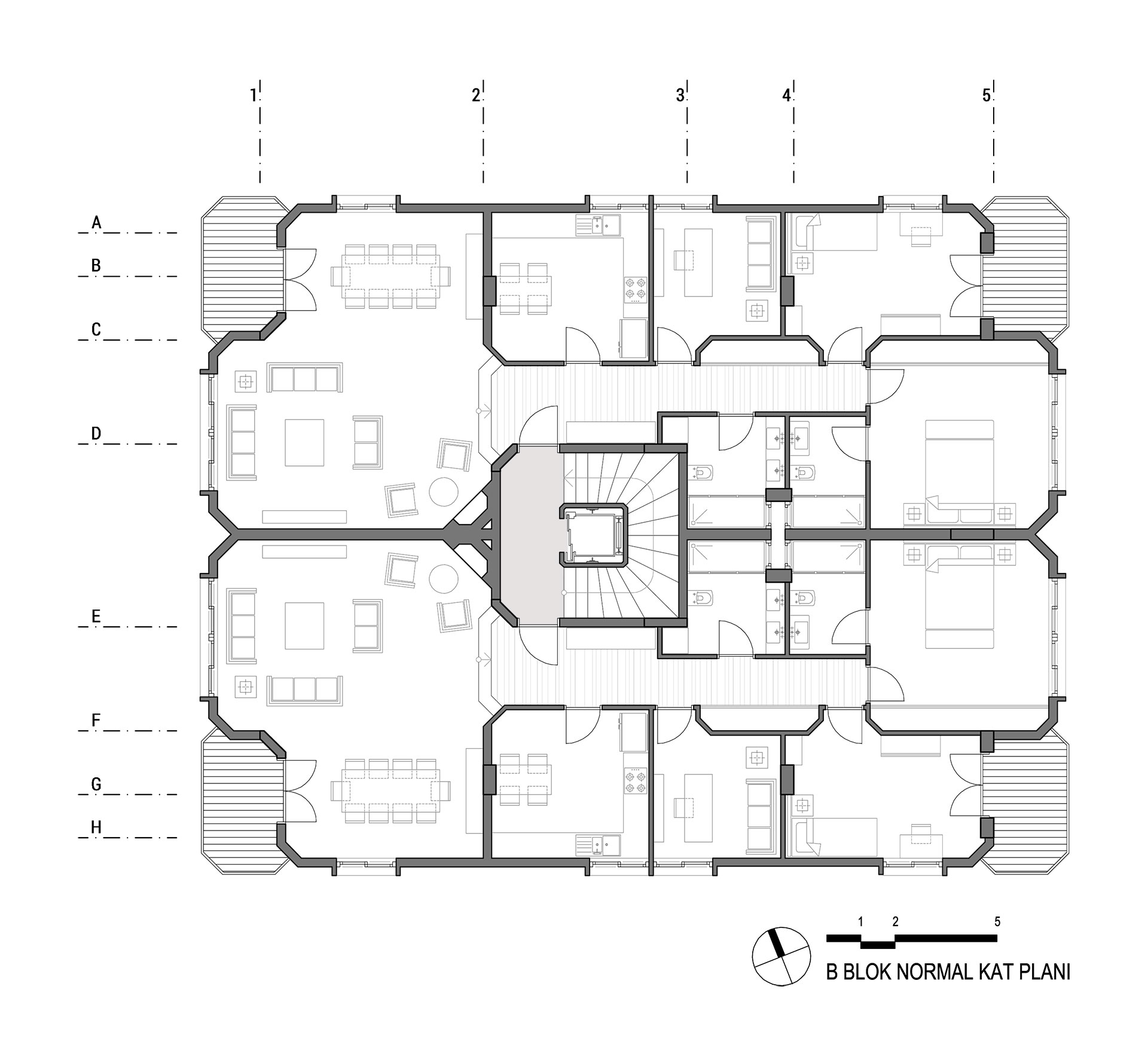 Yeşilköy'de, Gazi Evrenos Caddesi ve Harekat Ordusu Caddesi Sokak kesişiminde bulunan parsel içerisinde 4 blok olarak planlanmıştır. Apartman blokları, yol çeperlerine yerleştirilmiş, parsel içinde blokların arkasında Dilkum Sitesi'nin kullanımı için bir yeşil alan bırakılmıştır. Bu yeşil alanın, bulunduğu parselin dahil olduğu adanın ortasına yerleşmesi nedeniyle de sadece Dilkum Sitesi için değil, aynı zamanda ada içerisindeki diğer bloklar içinde bir yeşil, açık alan oluşturmaktadır. Site bahçesinde yeşil ve yürüyüş alanlarını oluşturan sert zeminler yatay beton elemanlarla ayrılmış, bu sınırlayıcılar aynı zamanda oturma elemanı olarak kullanılmaktadır Projede balkonlar açık bırakılmasına karşın, kullanıcılar tarafından kapalı balkona dönüştürülmüştür. Panjur yuvalarını gizlemek ve pencere önünde çiçeklik oluşturmak amacıyla pencere etrafı çerçevelenmiş ve cephede üç boyutlu bir etki elde edilmiş ve balkonlarla, yapının geri çekilmiş yüzeyleri arasındaki karşıtlık vurgulanmıştır. Pencerelerde sürme alüminyum doğrama ve cephede mineral sıva kullanılmıştır.
