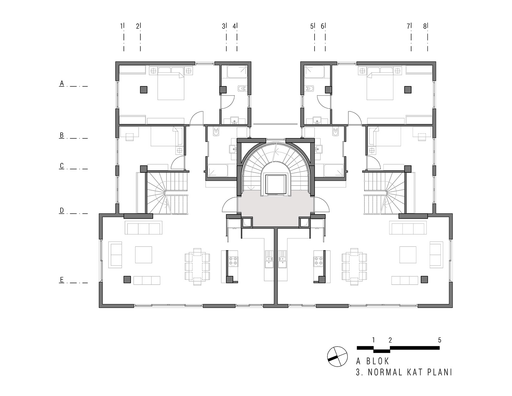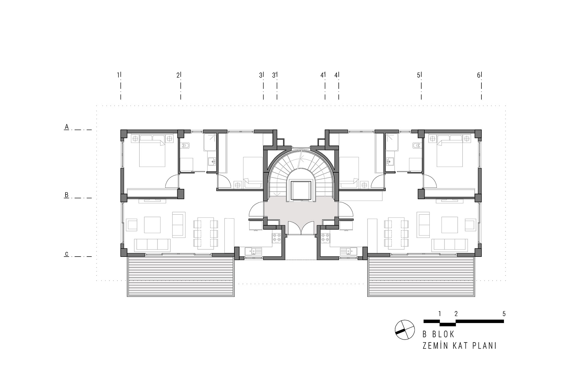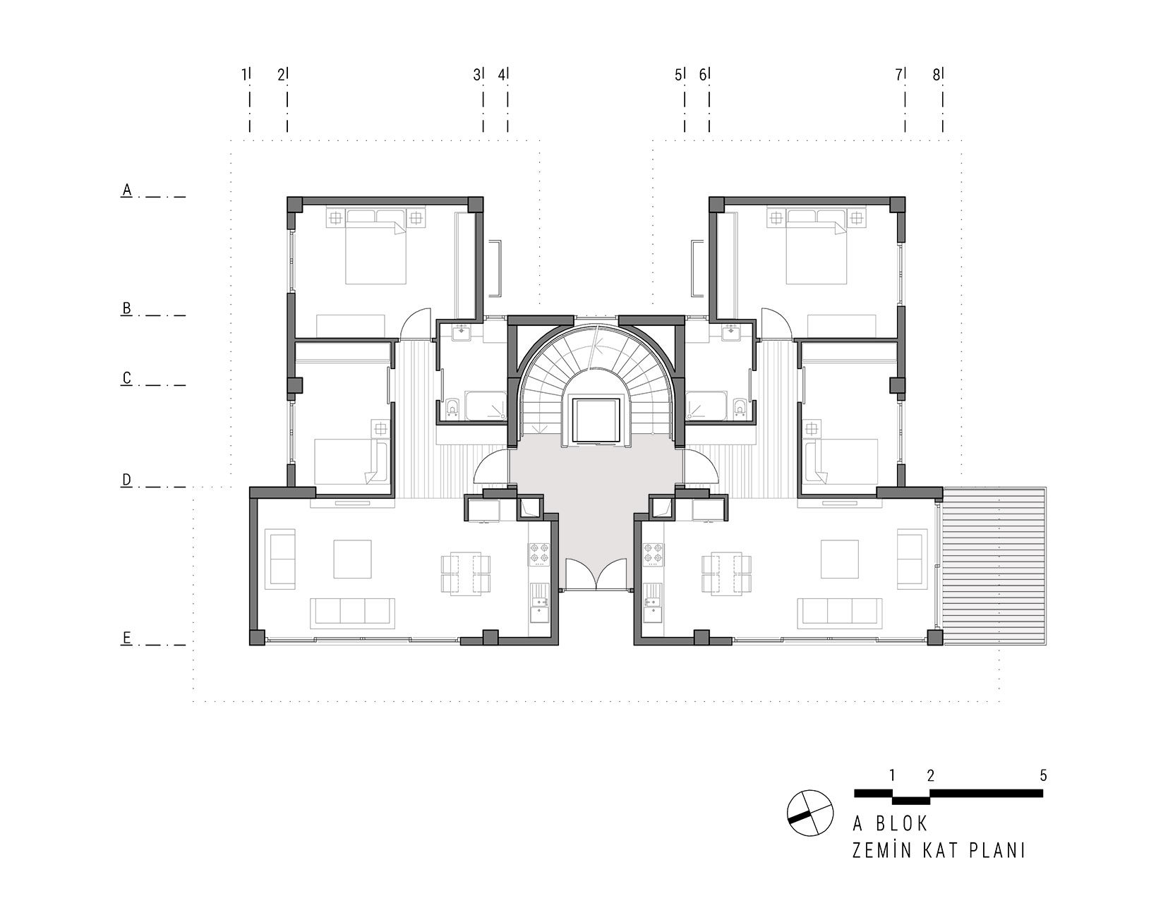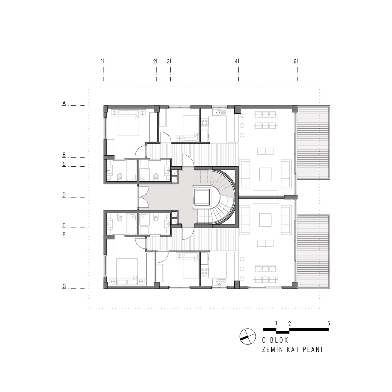 Yeşilköy Sahili’nde, Yeşilköy Köyiçi olarak adlandırılan tarihi sit alanın çeperinde bulunan alanda konumlandırılan Tanaçan Konutları projesi, üç ayrı blok olarak tasarlanmıştır. Blokların konumlandırılmasında alanın deniz manzarası ve arsa sahiplerinin, arsanın doğusunda bulunan konut yerleşkesi ile iletişimin az olması isteği dikkate alınarak ortadaki blok bu arsa sınırına yerleştirilmiş ve üç bloğun ortak olarak kullandığı yeşil alan arsanın batı sınırına yaklaştırılmıştır. Böylelikle konut alanının yeşil avlusu, arsanın batı duvarındaki, komşu parselin yoğun yeşil doku ile bütünleşmiştir. Alan içindeki her blok birbirinden bağımsız ve ayrı konut tipleri olarak tasarlanmıştır. Böylelikle alan içerisinde tek düzelikten kaçınılmış, dinamik bir konut alanı oluşturulmuştur.