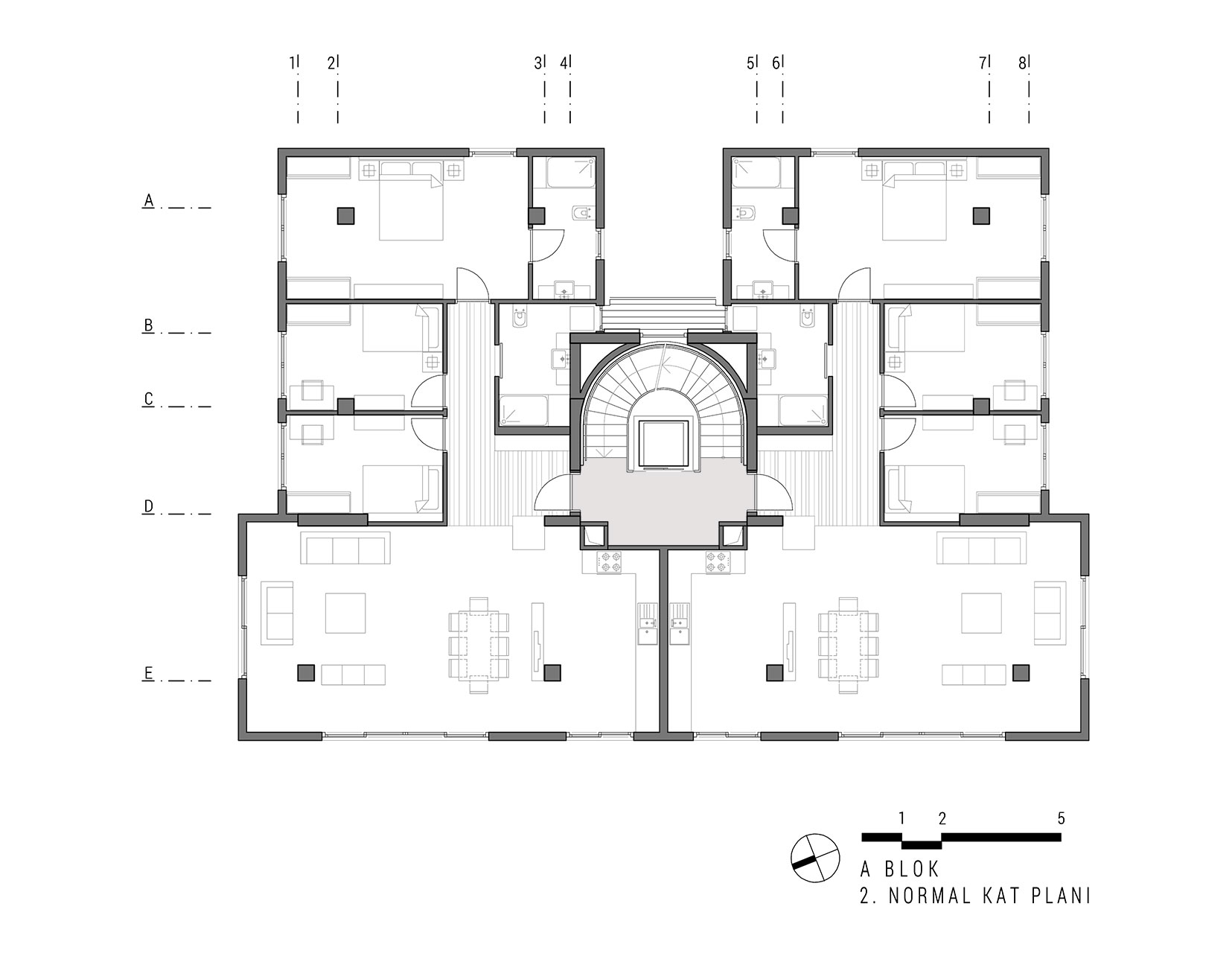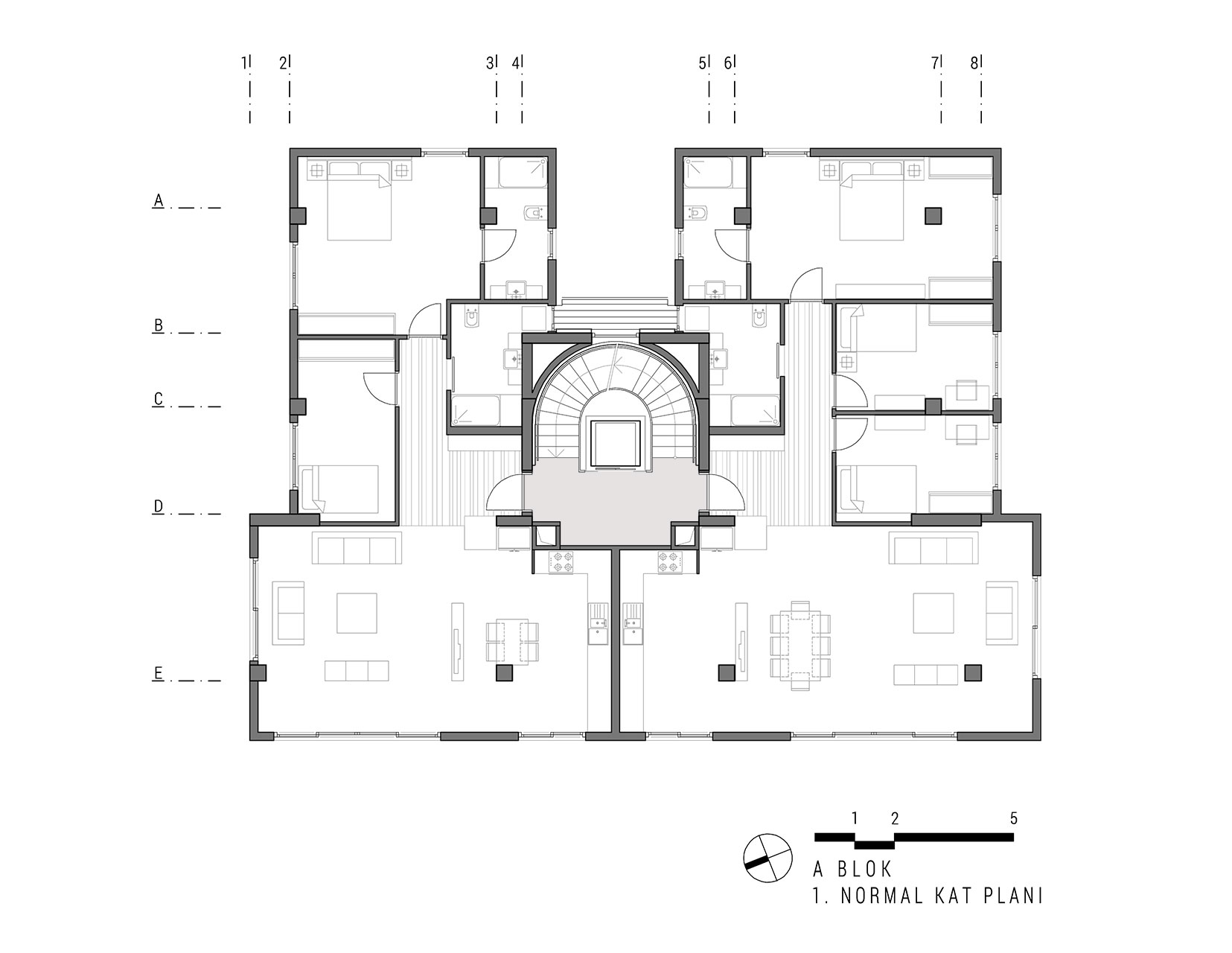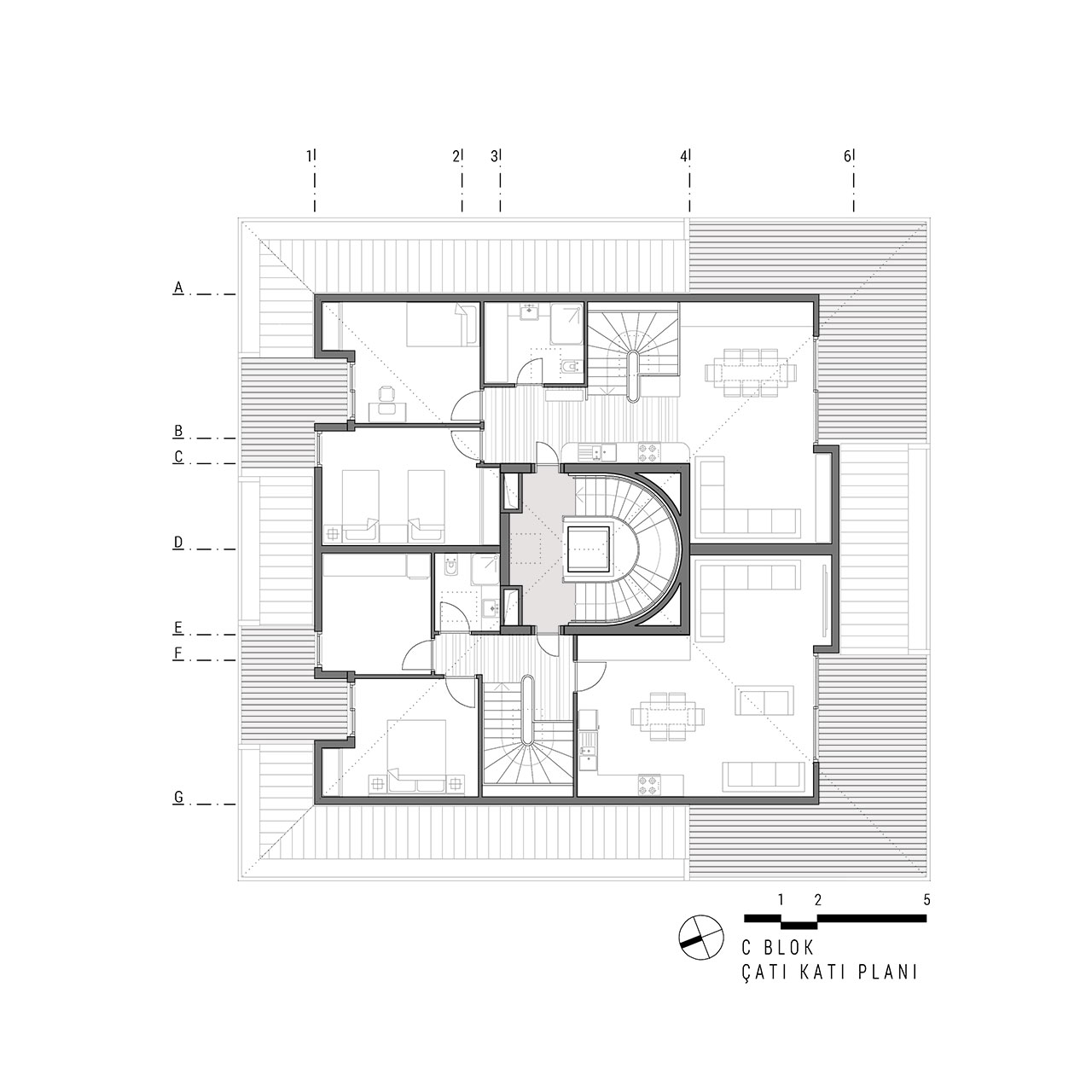 Yeşilköy Sahili’nde, Yeşilköy Köyiçi olarak adlandırılan tarihi sit alanın çeperinde bulunan alanda konumlandırılan Tanaçan Konutları projesi, üç ayrı blok olarak tasarlanmıştır. Blokların konumlandırılmasında alanın deniz manzarası ve arsa sahiplerinin, arsanın doğusunda bulunan konut yerleşkesi ile iletişimin az olması isteği dikkate alınarak ortadaki blok bu arsa sınırına yerleştirilmiş ve üç bloğun ortak olarak kullandığı yeşil alan arsanın batı sınırına yaklaştırılmıştır. Böylelikle konut alanının yeşil avlusu, arsanın batı duvarındaki, komşu parselin yoğun yeşil doku ile bütünleşmiştir. Alan içindeki her blok birbirinden bağımsız ve ayrı konut tipleri olarak tasarlanmıştır. Böylelikle alan içerisinde tek düzelikten kaçınılmış, dinamik bir konut alanı oluşturulmuştur.