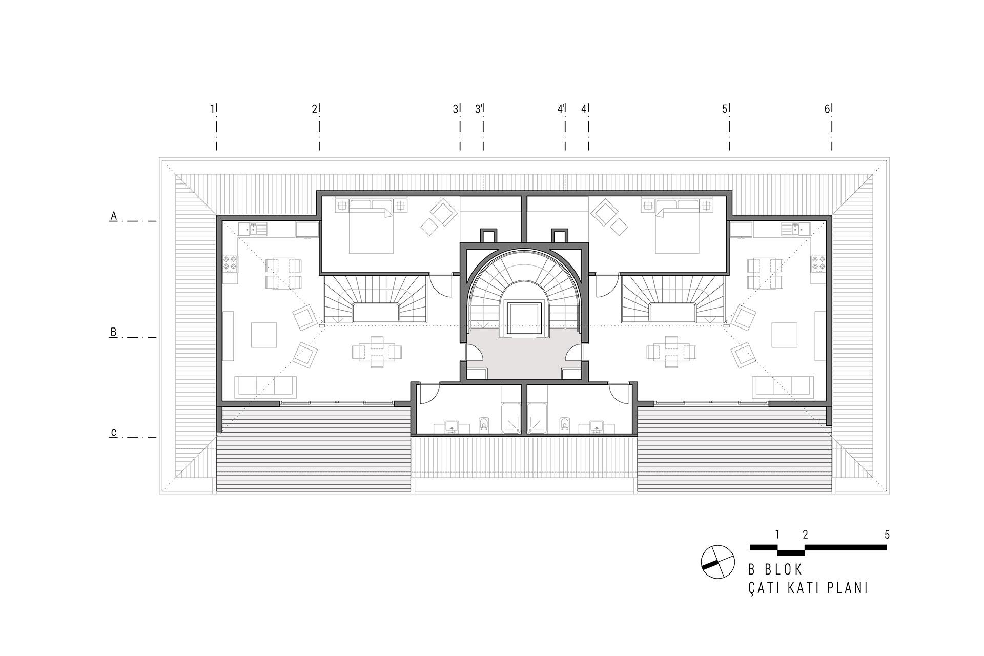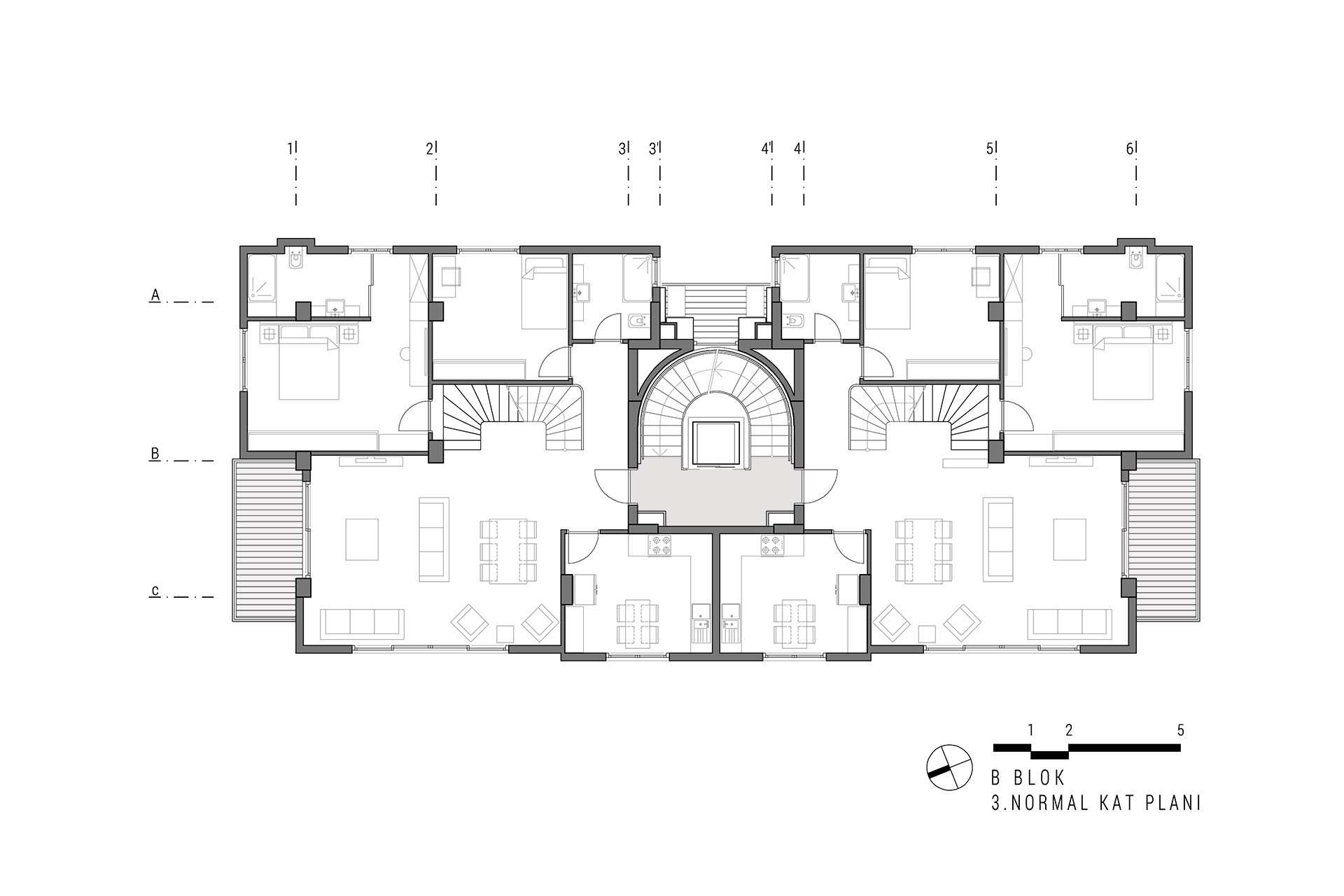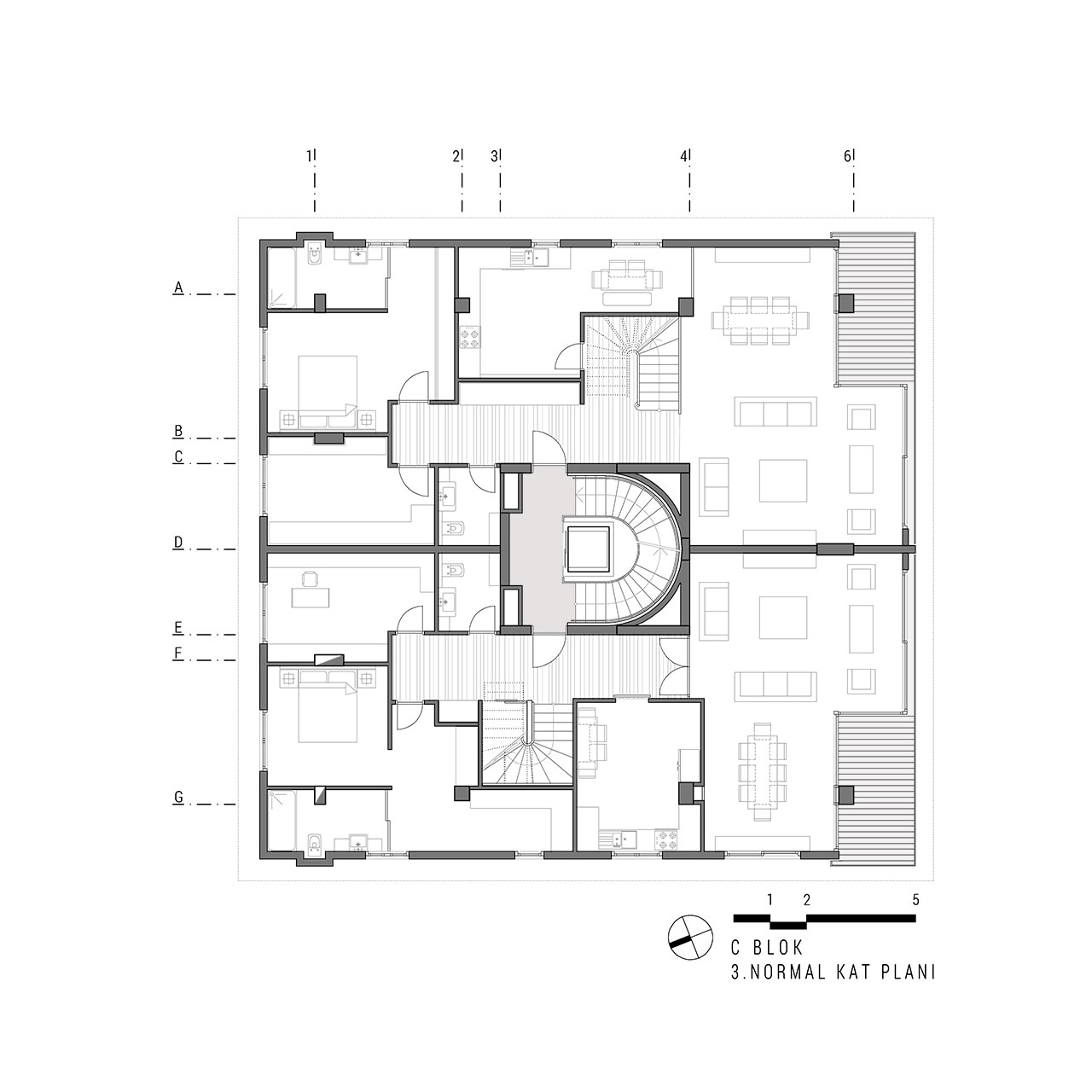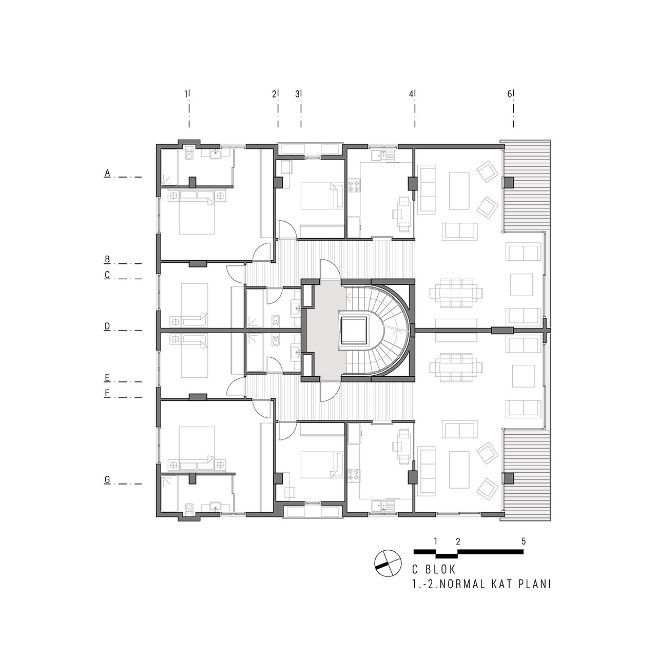 Yeşilköy Sahili’nde, Yeşilköy Köyiçi olarak adlandırılan tarihi sit alanın çeperinde bulunan alanda konumlandırılan Tanaçan Konutları projesi, üç ayrı blok olarak tasarlanmıştır. Blokların konumlandırılmasında alanın deniz manzarası ve arsa sahiplerinin, arsanın doğusunda bulunan konut yerleşkesi ile iletişimin az olması isteği dikkate alınarak ortadaki blok bu arsa sınırına yerleştirilmiş ve üç bloğun ortak olarak kullandığı yeşil alan arsanın batı sınırına yaklaştırılmıştır. Böylelikle konut alanının yeşil avlusu, arsanın batı duvarındaki, komşu parselin yoğun yeşil doku ile bütünleşmiştir. Alan içindeki her blok birbirinden bağımsız ve ayrı konut tipleri olarak tasarlanmıştır. Böylelikle alan içerisinde tek düzelikten kaçınılmış, dinamik bir konut alanı oluşturulmuştur.