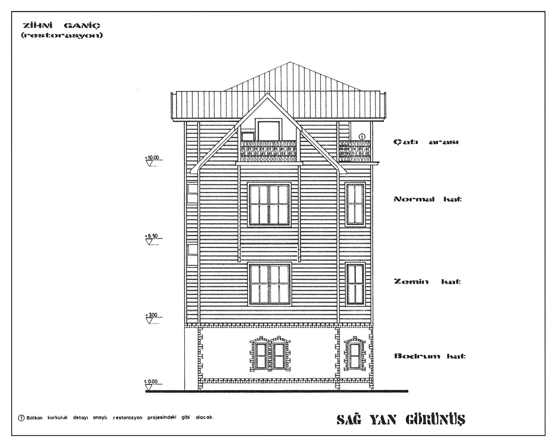İstanbul 2 Numaralı Kültür Varlıklarını Koruma Bölge Kurulu'nun onayladığı restorasyon projesine uygun olarak, cephe düzeni korunmak koşuluyla betonarme üzeri çıtalı derzli sıva ve boya tekniğiyle yeniden yapılan üç katlı konut yapısı Bakırköy'de, Kartaltepe Polis Merkez Amirliği'nin batısında ve Halkalı- Sirkeci demir yolu hattının güneyinde bulunmaktadır. Rölöve projesine uygun olarak, kendi dönemine ait yapı karakterini sürdüren, bezemelerden uzak, kütle hareketleri, yapının üç yönündeki cumbalar, çatı arası balkonları ve farklı kotlardaki parçalı çatı örtüsü yapının ana karakterini oluşturur. Yapının arsasına hem 10 Temmuz Caddesinden hem de Yanık Ses Sokak yönünden iki giriş bulunmaktadır. Çevresindeki yapılaşma mesafeleri de dikkate alınarak, iç mekan yerleşimlerinde yapının güneyindeki geniş boşluktan yararlanılmıştır. Çatı arası katı da dahil olmak üzere her katta birer bağımsız konut bölümü düzenlenmiştir. Giriş katı, iç sofalı ya da karnıyarık olarak adlandırılan türk evi plan tipinde planlanmıştır. Girişi karşılayan orta sofa alanının iki yanında kendilerine ait tuvaletleri olan odalar düzenlenmiştir. Normal katlarda ise kullanıcının ihtiyaçları doğrultusunda yaşama mekanı, iki oda, mutfak ve banyodan oluşan 80m²'lik daireler oluşturulmuştur.